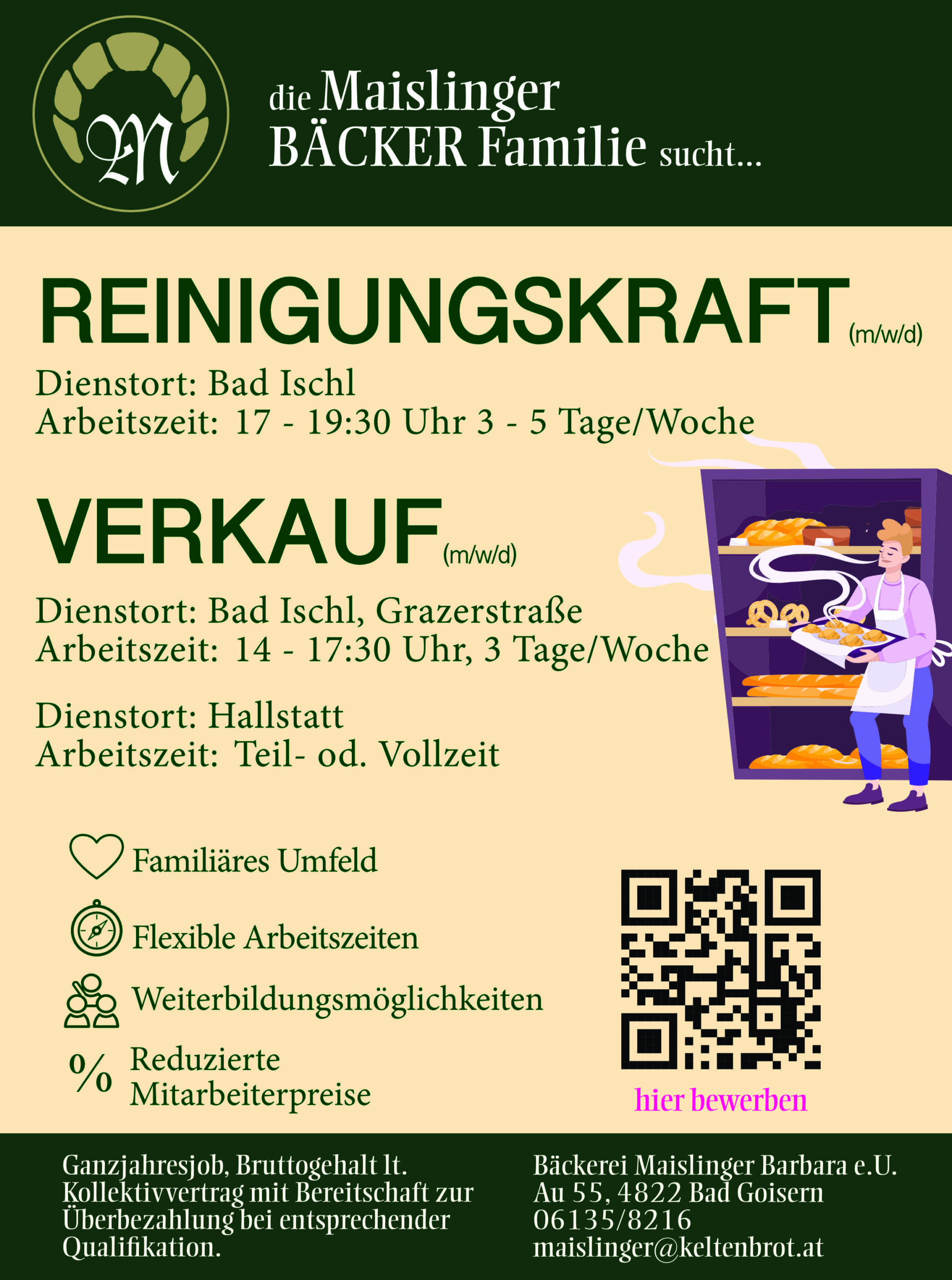 Seit 1932 steht unser Betrieb für backfrische Qualität. Mit 5 Filialen in Bad Goisern, Steeg, Hallstatt, Obertraun und Altaussee sowie mehreren Geschäftspartnern sorgen wir für die gesicherte Nahversorgung im Salzkammergut mit feinstem Brot und Gebäck. Dazu gesellt sich zahlreich Süßes aus unserem Guazalwerk, herzfrischende Lebkuchen und feinste Schokolade.
